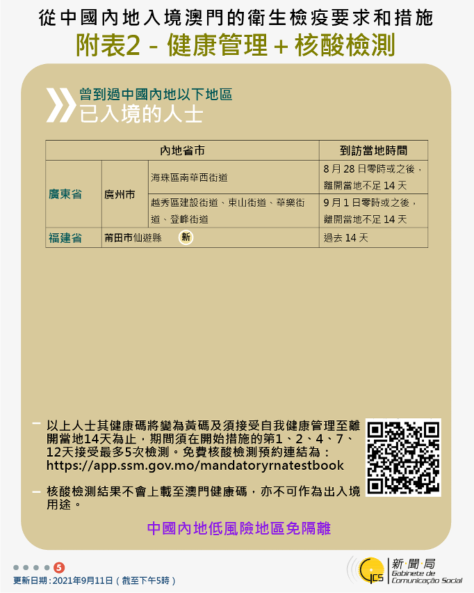 【图文包】2021/09/11最新入境澳门卫生检疫要求和措施