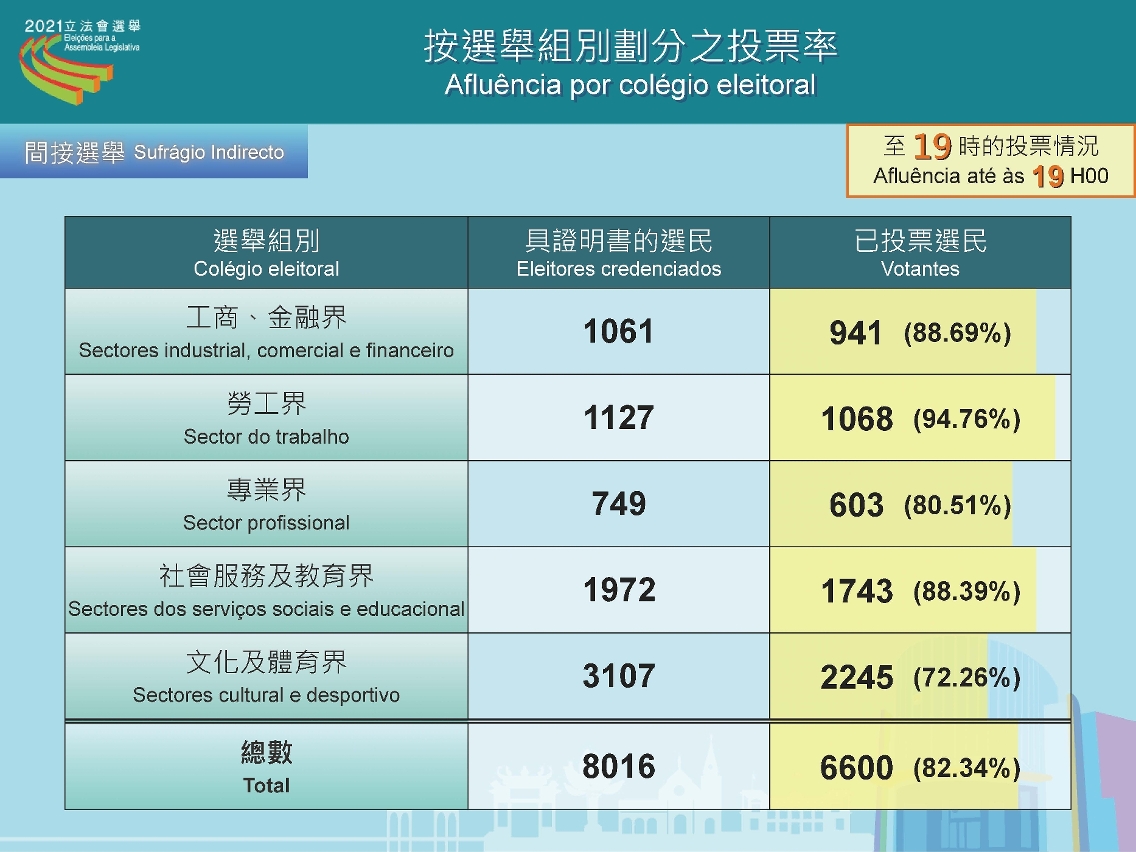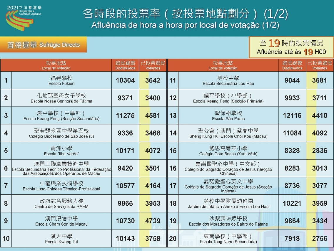 9.12立法会选举投票已进行了10个小时,截至晚上7时,直选共有122,692人投票,投票率为37.88%;间选共有6,600人投票,投票率为82.34%。