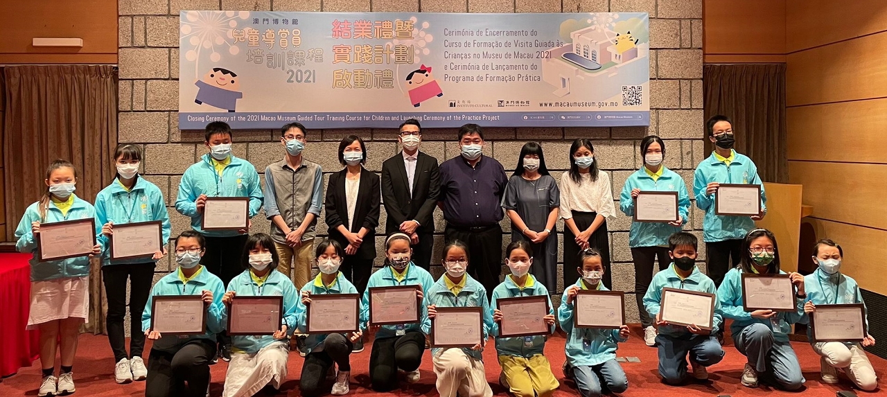 典礼上,主办单位向19名学员颁发结业证书,同时亦向取得最高评分的首三名学员颁发“优异奬”,以表扬其课程期间积极求知的精神及优秀的表现。本届学员将与往年的学员共同参与实践计划,完成计划后将正式成为“澳门博物馆儿童导赏员”,为公众提供导赏服务。