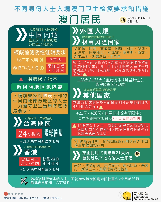 【图文包】2021/12/2最新入境澳门卫生检疫要求和措施