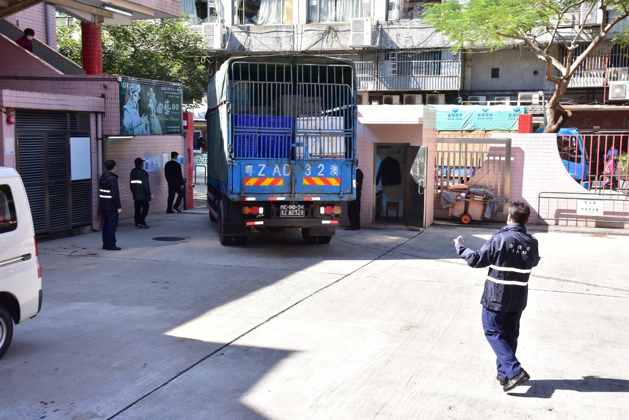 演习模拟卫生局通报批发市场出现确诊新冠病例,围封批发市场后,市政署即时启动“街市防疫保供预案”,保供协调小组采取行动,佑汉街市卸货场改作临时蔬菜集散点,由交通警员指挥货车进入卸货场,各街市摊贩代表按指示提货并搬上物流车辆,分送至各公共街市。