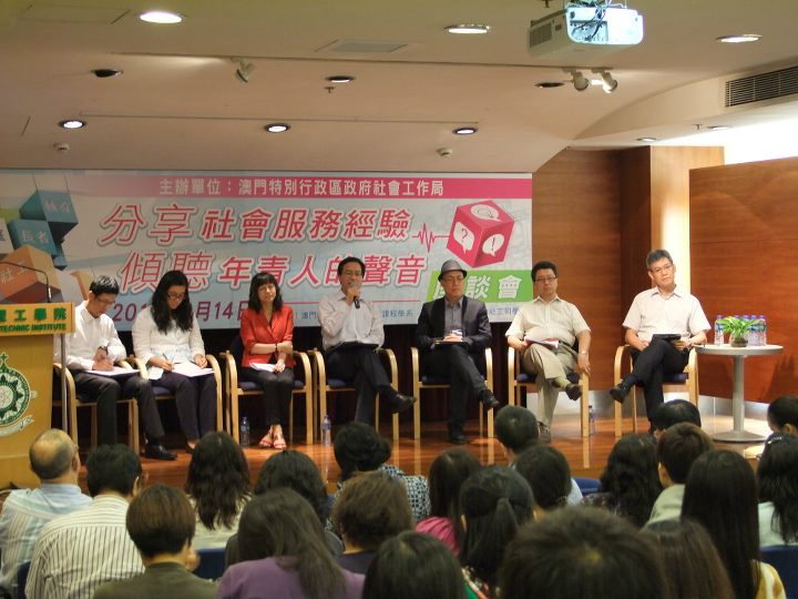 为了加强与青年人的沟通,鼓励成长一代多关心社会,参与社区服务。社会工作局与澳门理工学院学生会社工同学会举行了一场座谈会,就本澳的社会服务发展,与社工系学生进行互动交流,彼此分享个人的看法和体验,增进相互间的了解,对深化社工的专业培训起着正面作用。 "分享社会服务经验‧倾听年青人的声音"座谈会,本月14日下午假澳门理工学院汇智楼演讲厅举行,社会工作局容光耀局长、黄艳梅副局长和多位主管人员,在澳门理工学院社会工作学课程主任关志辉博士的陪同下,与100多名澳门理工学院、圣若瑟大学的师生进行座谈交流。 是次座谈会环绕着社会服务的主题,通过简报向与会者介绍社会工作局以「助民解困、共建新生」为服务使命,负责执行本澳的社会工作政策及措施。容局长表示,特区政府重点发展社会福利事业,为市民提供全面和适切的服务。因应社会服务是一项以人为本的工作,澳门各高等院校向来为本澳发展,培育出不少优秀的社工人才,贡献良多。他期望社工学生在求学阶段,好好充实自己,规划人生,多参与社会事务,为社会持续健康发展作出贡献。 会上,有学生代表分享其修读社工的理想和抱负,希望日后透过工作去帮助他人。有老师关注社工的就业前景,容局长回应时指出:随着未来众多的社会服务设施相继落成,预期社会对社工人才的需要将会增加,有见故此,局方正在筹设社会工作者注册制度等相关工作,以构建专业化社工团队。 在一片愉快的座谈气氛中,众多的发言者对本澳现行的社会福利政策、津助制度、社工就业情况、专业进修和社工注册制度等,各自提出个人意见和建议。与会代表藉此机会勉励学生们要坚守助人的理念,百折不挠,传承服务社会的光辉使命。