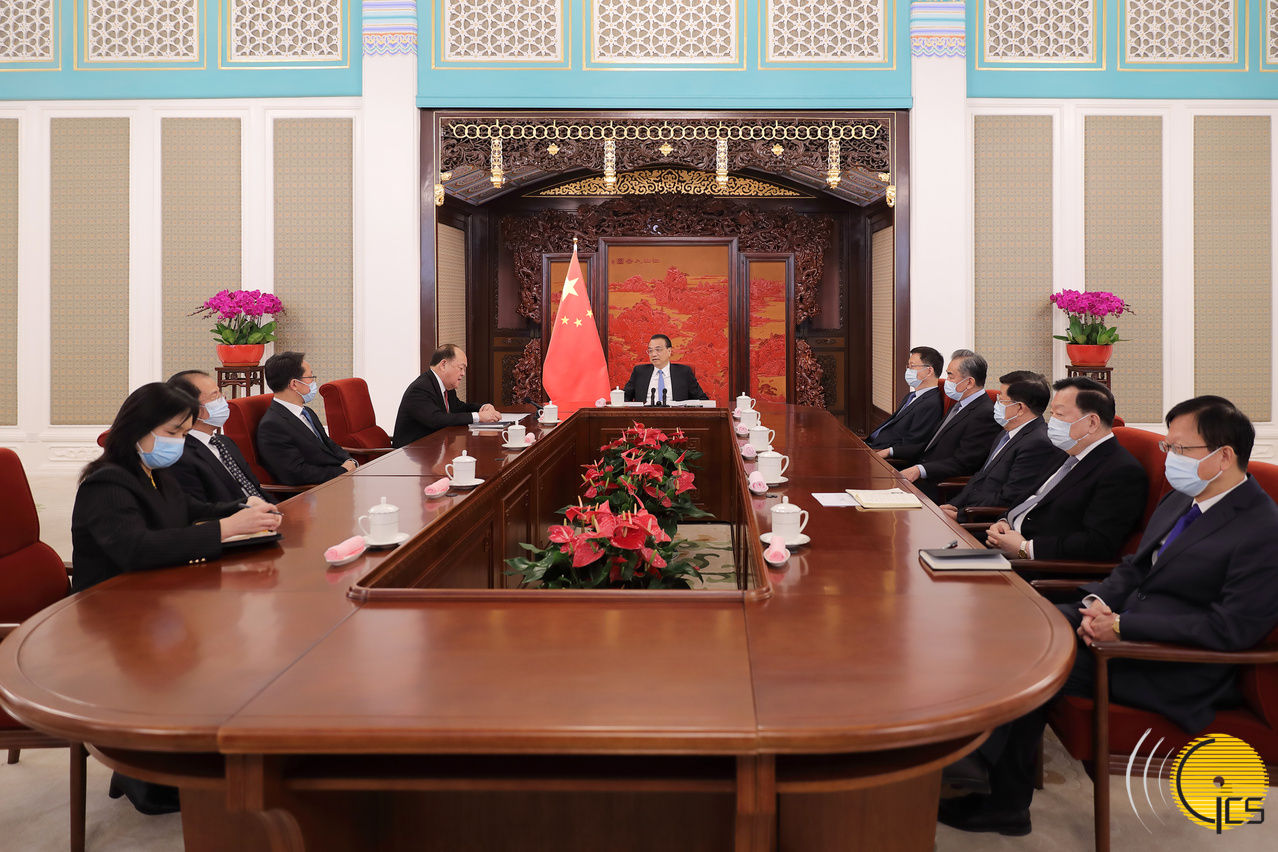李克强总理表示,面对疫情冲击,行政长官和特区政府采取一系列有力应对措施,在有效的防控疫情下促进经济复苏。中央政府充分肯定行政长官和特区政府的工作,并将坚定不移继续贯彻“一国两制”、“澳人治澳”、高度自治的方针,全力支持行政长官带领特区政府依法施政及完善《基本法》相关的宪制性义务和职责。
