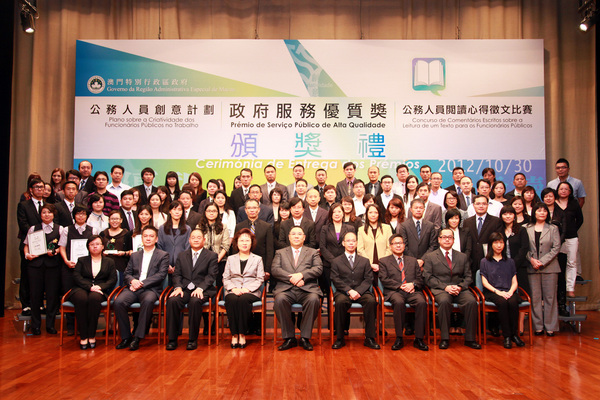"政府服务优质奖"设有五个奖项,其主要理念是透过内部竞争机制,鼓励部门、附属单位或团队提供优质服务。凡持续改进服务表现,经部门申请并在奖项评审范围内取得卓越绩效的将会获奖。获奖部门既得到特区政府肯定其工作成效,也将成为特区政府其他部门的楷模,让其他部门竞相仿效学习,提高本身行政效率和服务素质。本届共有7个部门20多个项目参与竞逐,经过公共服务评审委员会严谨的评审,最后,9个参奖项目获奖。 "公务人员创意计划"以公务员个人或不同部门、不同岗位公务员组成的团队为对象,经过由学术机构代表组成的评审委员会对所提交的不同公共行政议题研究报告严格评选,评出冠、亚、季军和五个优异奖。