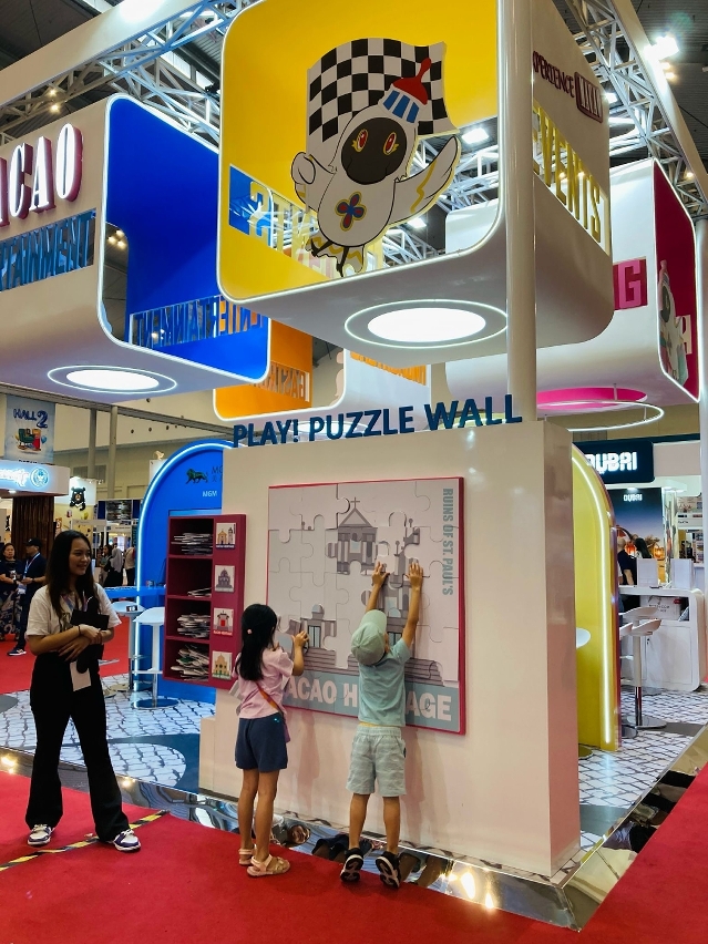 旅游局组织澳门综合度假休闲企业及航空公司代表参展,并在现场设置达36平方米的“澳门馆”展位,通过缤纷多彩的设计和互动游戏推广澳门世界遗产、盛事活动、美食和休闲旅游等元素,展示澳门充满活力的氛围和“旅游+”魅力。