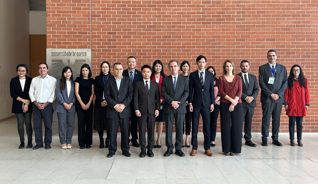 教青局与各高校领导及代表一行拜访了阿威罗大学,就澳门与葡萄牙的高校合作、推动交流生及交换生项目、两地科研学术交流等议题与校长进行了深入的交流。阿威罗大学成立于 1973年,是葡萄牙公立大学,在2024年QS世界大学排名中位列第344位、葡萄牙当地大学排名前10位,在校学生规模约14,000人,重点学科包括电机与电子工程、材料科学、环境科学等。葡萄牙大学校长委员会主席、阿威罗大学校长Paulo Jorge Ferreira在交流中介绍了该校的国际化发展情况、大学与企业的合作概况、大学学科优势及管理模式等。同时,在教青局副局长丁少雄见证下,澳门科技大学、澳门城市大学、圣若瑟大学及澳门镜湖护理学院分别与阿威罗大学签署合作协议,主要就澳门与葡萄牙两地高校学术交流、推动交流生及交换生项目等多方面加强合作。