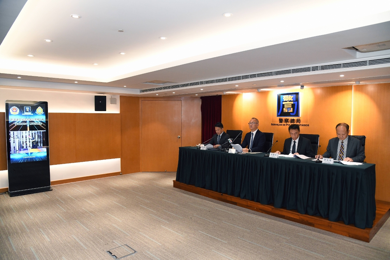 粤港澳三地警方联合警务行动—“雷霆2024”,于今(23)日进行新闻发布,澳方于上午十时在警察总局举行发布会,警察总局局长助理梁文照、澳门海关代助理关长叶华钊、司法警察局副局长苏兆强及治安警察局情报厅厅长郑俊禧出席,并在会上公布有关行动的统计数字,总结打撃成效。