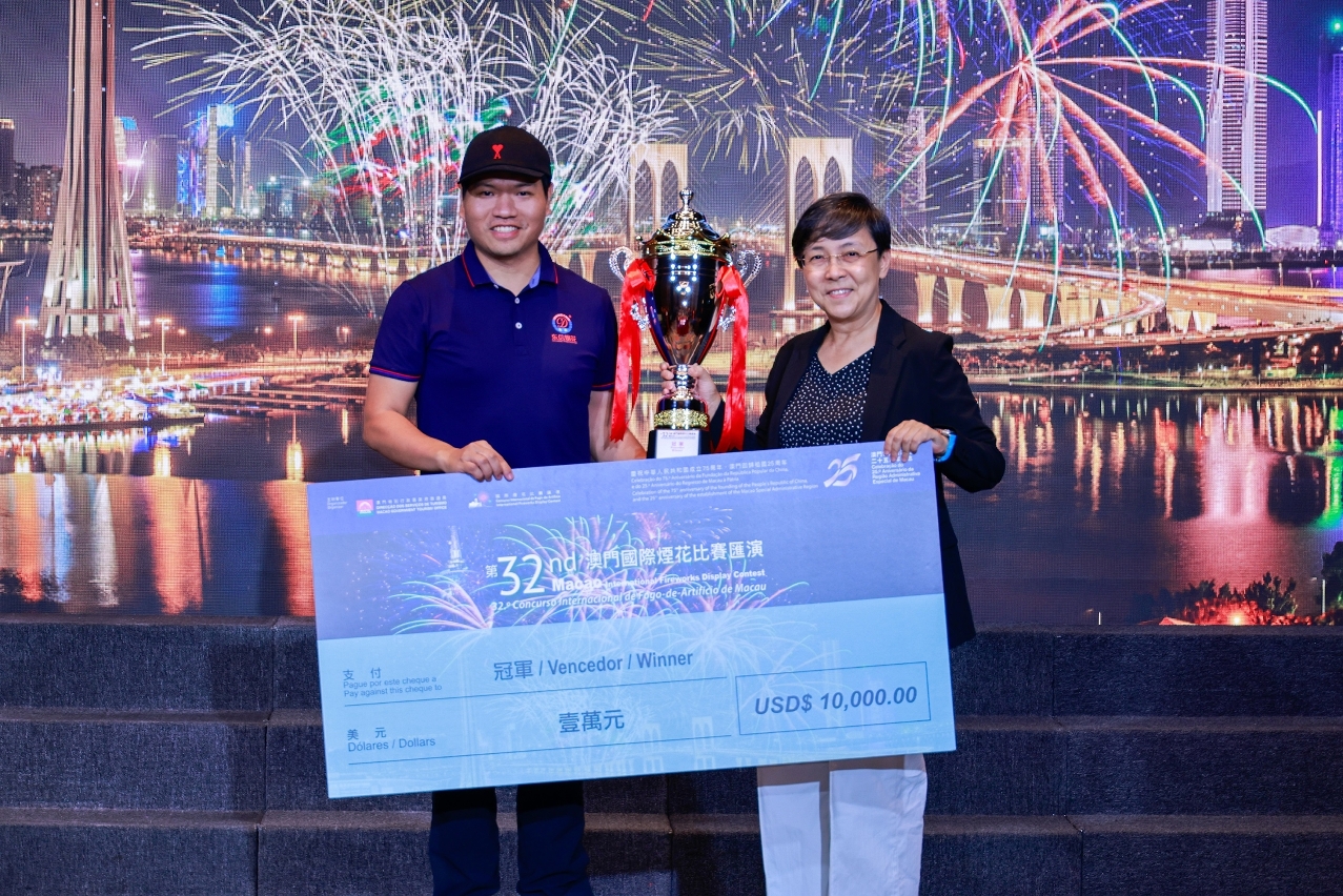 由旅游局主办的庆祝中华人民共和国成立75周年、澳门回归祖国25周年第32届澳门国际烟花比赛汇演于今(6日)晚上圆满落幕并举行颁奖典礼。来自世界各地的10间烟花公司施展浑身解数,在横跨9月和10月的五个烟花夜争妍绽放。经过一轮角逐,最终由来自中国内地的东信烟花公司夺得冠军宝座,俄罗斯的Pyro-Klass烟花公司及日本的株式会社丸玉屋小胜烟火店分别夺得亚军及季军。