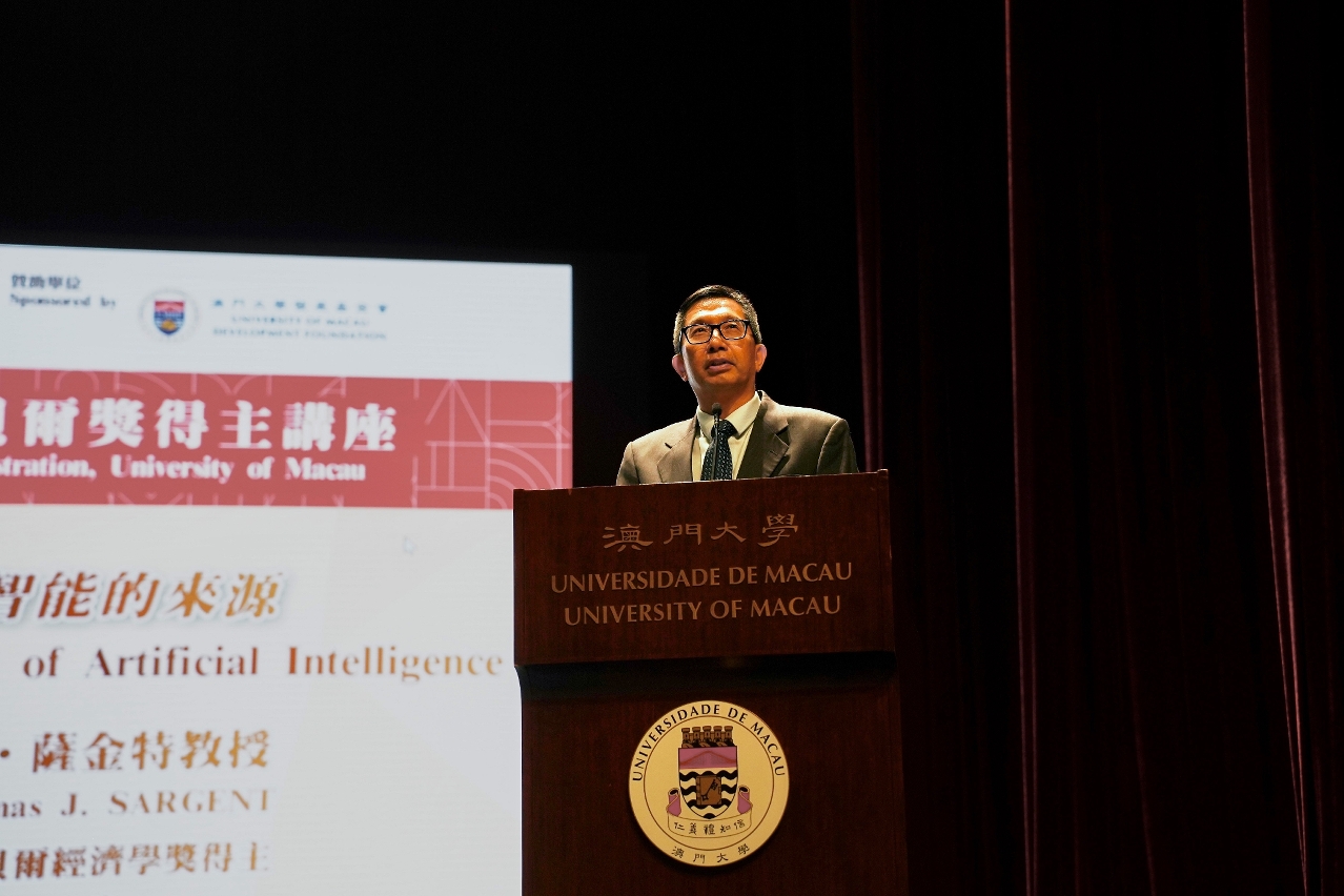 澳门大学工商管理学院今(5)日举行“诺贝尔奖得主讲座”,由诺贝尔经济学奖得主汤玛斯‧萨金特以“人工智能的来源”为题发表演说,探讨人工智能的起源与发展。是次讲座由澳门大学发展基金会赞助,吸引逾众多师生、业界人士、社会贤达及公众参与。