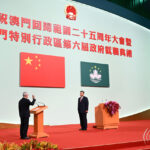 习近平主席出席庆祝澳门回归祖国25周年大会暨澳门特别行政区第六届政府就职典礼并发表重要讲话。(新华社图片)