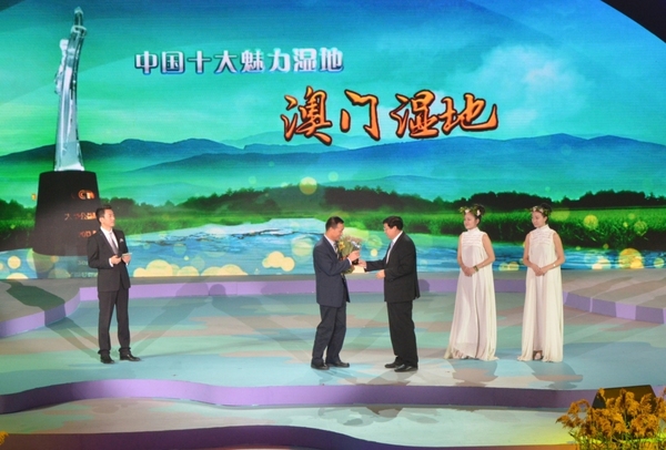 湿地被誉为"地球之肾",与森林、海洋并列全球三大重要生态系统。为展现中国在湿地保护领域所取得的成就,探索湿地保护的先进经验,中央电视台今年五月启动"美丽中国‧湿地行"大型公益活动,并於九月下旬开通网络投票。结合网络票数及活动组委会的评选,澳门湿地最终入选中国十大魅力湿地。 在经济快速发展,人口持续增长的情况下,中国湿地正面临多样问题,如生物多样性衰减、全国湿地面积减少等等。是次活动举办的目的,除探索及交流湿地保育经验外,更希望唤醒人们对自然环境保育的意识,共同维护湿地的健康生长。活动由五月启动,内容包括启动仪式、纪录片展播、网络选举、颁奖礼等等。据悉,整个网络选举共录得二亿三千多万人次参与,澳门湿地获得超过一百万票,结合活动组委会,以及国家林业局的领导、专家学者的评选,根据价值是否突出、物种是否独特、保护是否有利为标准,澳门成功入选中国十大魅力湿地。 "二○一三中国十大魅力湿地颁奖典礼"於十月三十一日在北京举行,民政总署管理委员会代主席黄有力、委员梁冠峰日前赴北京。黄有力获邀任颁奖嘉宾,颁发奖项予云南红河哈尼梯田国家公园,而梁冠峰则代表民政总署,在国家林业局局长赵树丛手上领取奖项。 梁冠峰在颁奖活动上的访谈中表示,澳门湿地虽然小,但非常珍贵,她保育着我们的原生物种,为澳门广大市民、访客和候鸟服务。保育原生物种才有生物多样性,保持生物多样性才可以确保发展与保育平衡。黑脸琵鹭来澳越冬,以及发现世上特有且对生长环境要求相当高的"澳门凤尾藓",体现了人与自然和平共处,是广大澳门市民、民政总署、环境保护局及爱护澳门湿地人士一直以来付出的努力。希望各界能更关注环境保育公益事业,爱惜湿地。 根据资料显示,全国基本形成了四十一处国际重要湿地,五百多处湿地自然保护区、四百多处湿地公园为主体的全国湿地保护体系。是次入选的十大魅力湿地当中,还包括广西北海山口红树林国家级自然保护区、黑龙江扎龙国家级自然保护区、辽宁盘锦双台河口国家级自然保护区、新疆巴音郭楞州巴音布鲁克国家级自然保护区、浙江杭州西溪国家湿地公园、宁夏石嘴山沙湖自然保护区、云南红河哈尼梯田国家湿地公园、福建福州闽江河口湿地国家级自然保护区及山东济宁微山湖国家湿地公园。