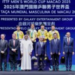 行政长官岑浩辉出席2025年澳门国际乒联男子及女子世界杯颁奖仪式。