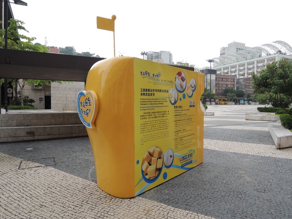 民政总署持续以各种活泼有趣的形式向市民大众宣导食品安全资讯,本季度推出户外宣传品"食安大芝士",展示有关食用乳制品应注意的事项,提醒市民在选购及贮存乳制品时细心留意温度、环境及食用期限。 维护食品安全是澳门特区政府一项十分重要的工作,为进一步加强公众的食品安全意识,民署继去年推出两项大型户外宣传模型后,本季度再以日常食品为设计概念,推出了两个"食安大芝士"户外宣传模型,提醒市民避免因不当贮存及处理而导致乳制品变坏,误食后造成身体不适。 模型上展示了一些食安小常识,例如选购时留意标签上的食用限期、注意包装的完整性、外观应无破损等,并应尽快食用,尚未食用完之奶类及乳制品应冷藏於摄氏五度以下,以免变壊。 "食安大芝士"现设於塔石广场以及氹仔巴波沙总督前地,其后将於澳门、氹仔及路环的不同地点巡回展示,让各区的居民及游客阅览。另外,民署在食品安全资讯网页www.foodsafety.gov.mo上载了一系列食安常识,当中包括针对业界的卫生及操作指引,欢迎业界及市民查阅,提升食品安全的认知。