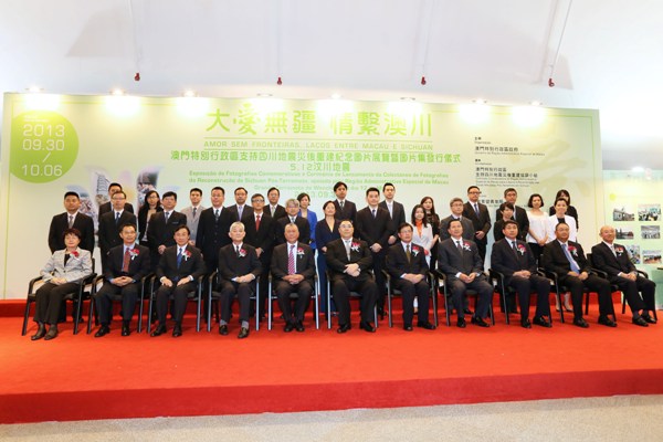 由澳门特别行政区政府主办,澳门特别行政区支持四川地震灾后重建协调小组筹办,教育暨青年局承办的"大爱无疆 情系澳川"澳门特别行政区支持四川地震灾后重建纪念图片展览暨图片集发行仪式,於二○一三年九月三十日(星期一)下午四时假澳门科学馆二号展览厅举行。 行政长官崔世安、全国政协副主席何厚铧、中华人民共和国外交部驻澳门特别行政区特派员公署特派员胡正跃、立法会主席刘焯华、社会文化司司长张裕、行政长官办公室主任谭俊荣、中央人民政府驻澳门特别行政区联络办公室文化教育部副部长张晓光、四川省人民政府代表-四川省港澳办副主任唐宏、澳门基金会行政委员会主席吴志良、教育暨青年局局长梁励、澳门日报社长陆波主持图片展览暨图片集发行仪式,社会各界人士均有出席。 社会文化司司长张裕在致辞时表示,二○○八年五月十二日四川汶川地区发生特大地震,造成广泛破坏及大批人员伤亡。澳门各界纷纷施以援手,共筹得善款超过澳门币五亿元,而特区政府同时拨款五十亿元,澳门基金会拨款五亿元,以协助四川灾后重建工作;并成立了"澳门特别行政区支持四川地震灾后重建协调小组",由时任社会文化司崔世安司长领导该协调小组与四川方面建立协调机制,至今共完成一百零三个援建项目。是次举行图片展览和发行图片集,希望能够将澳门全体市民对四川同胞的热心捐助、无私奉献、患难与共的宏大情怀一一展现出来。同时感谢社会各界、新闻媒体及广大市民四年来对援建工作关注和支持。 仪式上社会文化司司长张裕与教育暨青年局局长梁励向各主礼嘉宾及本澳各教育团体代表赠送图片集。是次图片展览期间由二○一三年九月三十日至十月六日,星期一至日早上十时至下午六时,公众假期照常,逢星期四休息,地点:澳门科学馆二号展览厅。上述展览欢迎本澳市民参观,费用全免。展览随后亦将於本澳学校及各社会机构作巡回展出,以加深本澳市民及学生对援建情况的了解,详情请浏览教育暨青年局网页www.dsej.gov.mo 或致电8397-2349、8397-2337向该局吴先生或诸小姐查询。