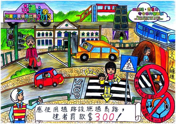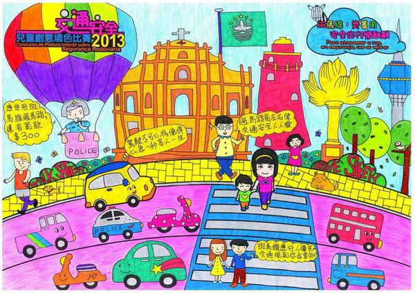 "2013交通安全儿童创意填色比赛"已於7月1日截稿,是次比赛主办单位共收到3,216份参赛作品。经评选后,各参赛组别已分别选出冠、亚、季、殿及优异奖9名优胜者,颁奖仪式将於10月下旬举行的"交通安全嘉年华"活动上进行。 为宣扬交通安全讯息,交通事务局、治安警察局、法务局及民政总署今年再度合办"交通安全儿童创意填色比赛",是次比赛亦是「2013年交通安全推广」系列活动之一。主题为"斑马线,齐善用,安全出行乐融融",主办单位希望透过填色及主题创作,提高小朋友善用并正确使用斑马线安全横过马路,使小朋友从小培养良好的过路美德。 主办单位收逾3,200参赛作品