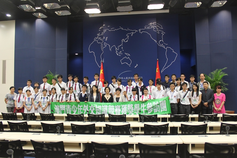 由澳门特别行政区政府及中华人民共和国外交部驻澳门特别行政区特派员公署主办、教育暨青年局承办、澳门工会联合总会协办的二O一二/二O一三学年"澳门青少年外交知识竞赛"获奖学生内地参访活动於七月圆满举行。参访团一行四十一人到访了北京市和山西省的多个国家主要机构和国家级的历史、教育和艺术景点。外交公署副特派员张金凤和教青局局长梁励於七月二十六日下午与参访团师生在外交公署进行了分享会。 张金凤副特派员和梁励局长在分享会上勉励学生除了要努力学习外,还应多关注国家、澳门和国际的发展情况,勇敢向自己的梦想前进,发展个人才能。此外,梁局长更表示参访活动能够圆满举行,让学生有丰富的收获和得着实有赖国家外交部、外交公署和澳门工会联合总会的全力支持,做了大量工作,教青局对此表示衷心的感谢。 学生们在分享会上讲述参访过程中的难忘点滴,个中感受和得着。由参访的内容谈到外交知识竞赛的活动优化,再谈到国际形势的发展等。发言踊跃,无所不谈,气氛热烈。 学生们表示,拜访中国人民外交学会和外交学院令人难忘。参访团得到中国人民外交学会常务副会长卢树民的热情款待,还与外交学院的大学生进行交流,学习到公共外交和人民外交等方面的知识,让自己更进一步了解外交的深层意义。此外,能够拜访钓鱼台国宾馆和在该处享用午宴,从中了解国家接待外宾的礼节,学习到外交和餐桌礼仪,丰富了人生阅历,学生们更觉机会难能可贵。 大部分学生认为感受最深的是能够亲临外交部新闻发布会现场,目睹发言人接受记者提问和即场回应,并能够直接与发言人华春莹交流,了解发言人的工作点滴和面对广大传媒的应答技巧。交流内容给学生们留下深刻的印象,对提高自身的待人接物和应变技巧有极大帮助。 此外,学生们还分享了历史和艺术方面的丰富收获。此行参观了北京故宫博物院,欣赏到国家级的历史珍宝。到国家大剧院欣赏了精彩的芭蕾舞表演,并於798艺术区亲身感受国家文化创意产业的发展,以及到山西平遥古城,感受到古人如何利用城市规划发展通商经贸等。 学生们以"读万卷书不如行万里路"和"获得了宝贵经验"来形容是次活动的得着和感受,认为获得了许多课堂和课本以外的知识。纷纷表示参与本次活动开阔了视野,加深了对国家发展的了解,获益良多。