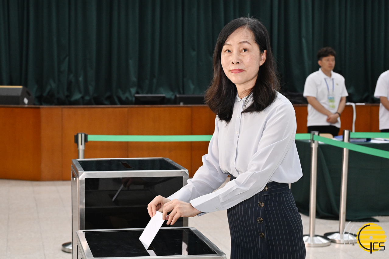 审计长欧阳瑜今(14)日下午到所属的嘉诺撒圣心中学(中文部)票站投票。她接受记者访问时表示,投票流程十分顺利,现场工作人员安排妥善,选管会的组织工作良好。她呼吁合资格选民踊跃投票。