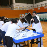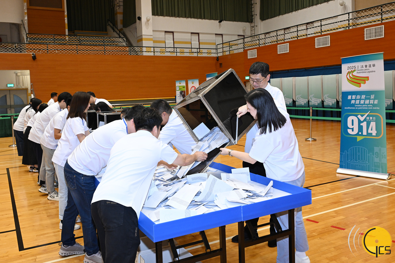 2025立法会选举:投票站人员在截止投票后开启票箱进行点票工作。