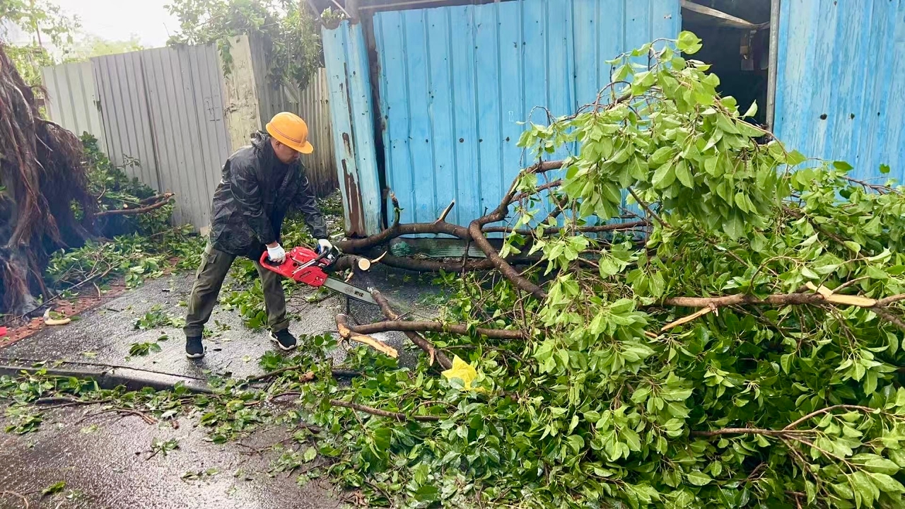 台风过后,市政署于今日凌晨起加紧清理各区塌树及断枝,扶正被强风吹歪的树木,已优先处理阻碍交通干道或紧急的个案,以尽快开通道路,保障市民安全。有关清理善后工作仍在加紧进行,市政署呼吁市民,切勿擅闯围封区域或走近有倒塌风险的危树。由于未来几日天气仍不稳,应避免在风雨期间或其后数日内进入山坡林区及在树下逗留,以免发生意外。