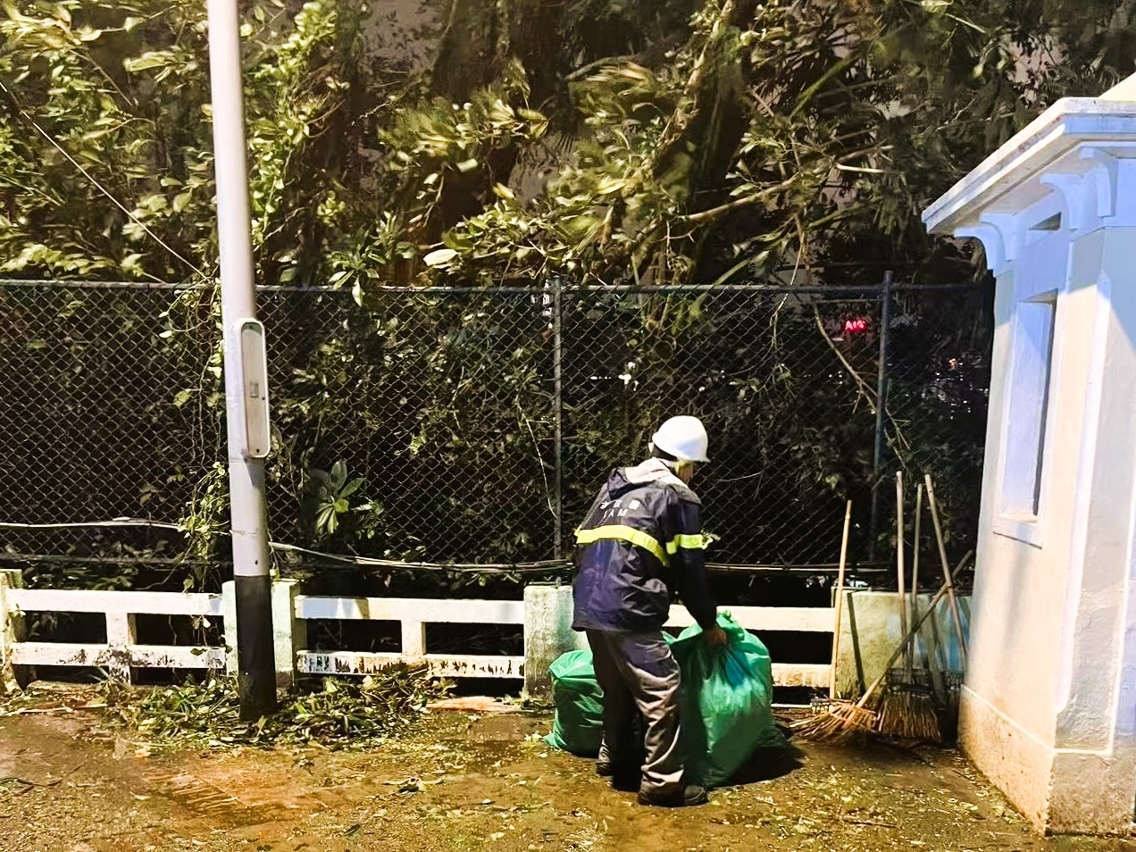 台风过后,市政署于今日凌晨起加紧清理各区塌树及断枝,扶正被强风吹歪的树木,已优先处理阻碍交通干道或紧急的个案,以尽快开通道路,保障市民安全。有关清理善后工作仍在加紧进行,市政署呼吁市民,切勿擅闯围封区域或走近有倒塌风险的危树。由于未来几日天气仍不稳,应避免在风雨期间或其后数日内进入山坡林区及在树下逗留,以免发生意外。