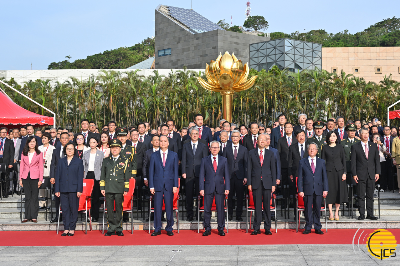 行政长官岑浩辉、中央驻澳官员、解放军驻澳部队军官、特区立法和司法机关负责人、政府主要官员及各界人士出席庆祝中华人民共和国成立76周年升旗仪式。