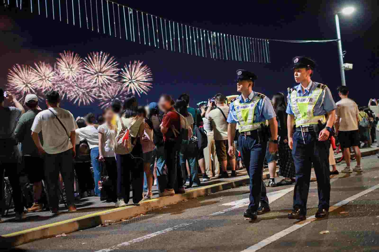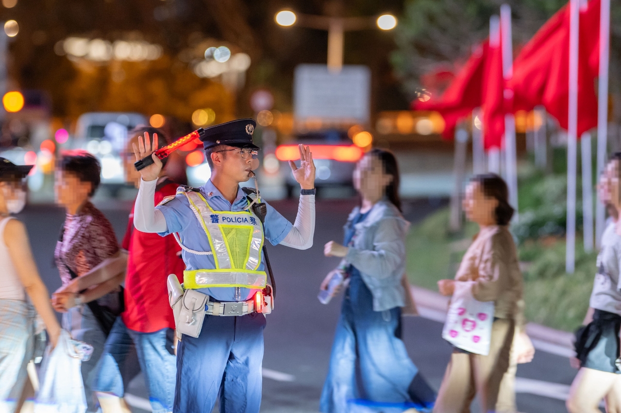 澳门国际烟花比赛汇演于10月1日及2日连续两晚精彩上演,为确保活动顺利进行,治安警察局针对各热门观赏点加强警力部署,不仅安排前线警员驻守巡逻,更抽调内勤人员支援前线警务,全力开展人流疏导及交通指引工作。