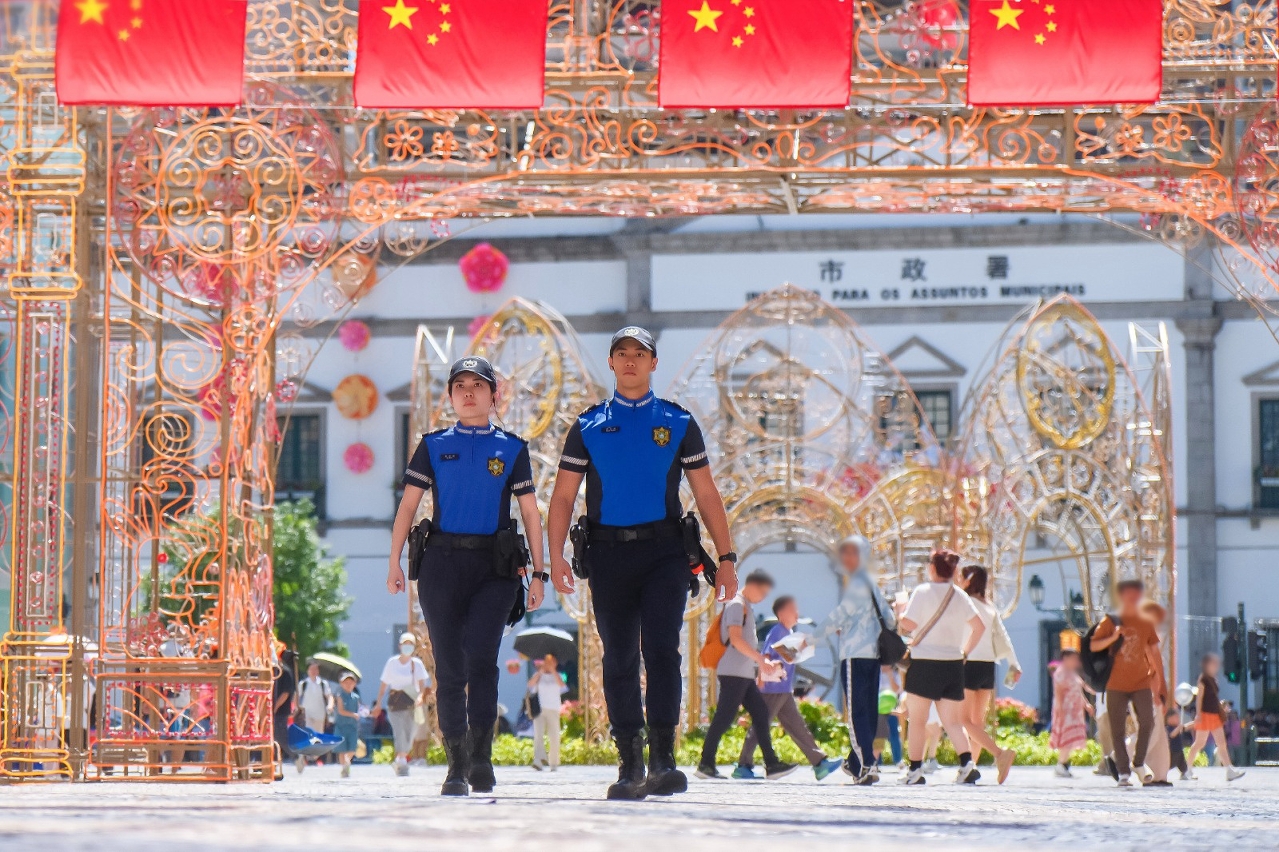 节假日期间,大多旅客前往路氹城金光大道、中区的新马路及大三巴周边游览。为保障现场畅通有序,治安警察局增派警力在各旅游热点周边驻守,实时疏导人流,市民与旅客均自觉遵守现场警员指示行进,整体秩序良好。