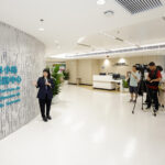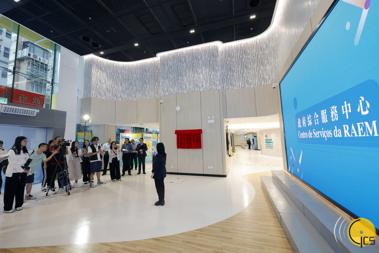 市政署组织媒体参观慕拉士政府综合服务中心,向记者介绍中心各区域布局。