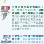 因应热带气旋逼近,劳工事务局提醒所有工友,在恶劣天气下工作,必须严格按照与雇主预先制定的预防措施,多加注意自身及公众安全,以及务必注意以下事项: