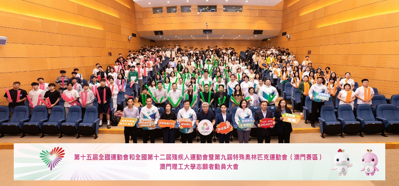 为全力支持第十五届全国运动会及全国第十二届残疾人运动会暨第九届特殊奥林匹克运动会,澳门理工大学举办全运会志愿者动员大会,凝聚师生齐心同向,支持澳门特区政府举办这场全国性高水平的大型综合运动比赛,同时为一众澳理大志愿者打气加油,现场绽放青春活力,志愿者热诚投入,以行动、以力量点亮全运,共同喜迎全运会。