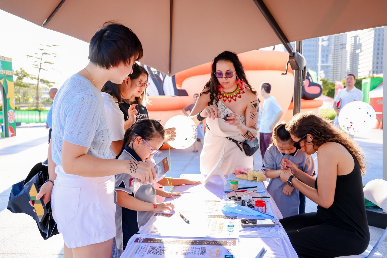 在“葡韵文化”专区,8个特色文化摊位展示了葡语国家及地区的传统工艺品,澳门土生葡人导师现场主持手绘葡砖杯垫、环保袋等工作坊,让参与者亲手制作独具葡韵的纪念品。许多家长带着孩子参与特色手工制作,现场欢声笑语不断,文化在轻松愉快的氛围中得以传播。现场还设有互动式文化展墙,系统介绍九个葡语系国家和地区的历史文化。