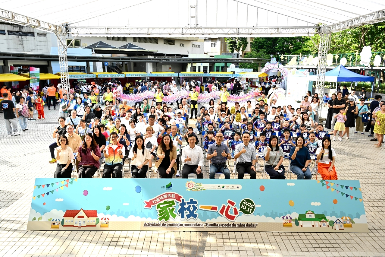 为鼓励家校合作共同关注子女的身心健康,教育及青年发展局于10月11日(星期六)假佑汉街市公园举办 “家校一心”社区推广日,教青局副局长黄嘉祺、非高等教育厅厅长蔡敏芝、石排湾公立学校校长韩旭、镜平学校副校长梁静霞、中葡职业技术学校副校长黄德麒、劳校中学家长会理事长杜家文、圣若瑟教区中学第五校家长教师会理事长曹颖仪、镜平学校家长教师会理事长杨妙珊、中葡职业技术学校家长会会长李宝莹、石排湾公立学校家长会会长林安琪、粤华中学家长教师会理事胡智慧,以及逾2,800人次亲子及市民参与。