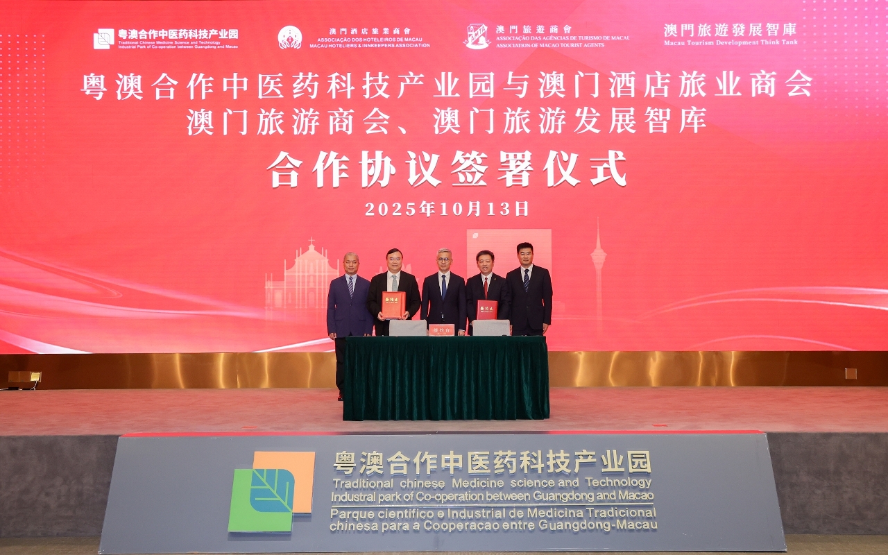 为积极回应国家战略部署,深化澳琴文旅产业协同发展,粤澳合作中医药科技产业园(以下简称“产业园”)今(13)日与澳门酒店旅业商会、澳门旅游商会及澳门旅游发展智库签署合作协议,标志着各方在“中医药大健康+旅游”跨界融合发展道路上迈出坚实一步。