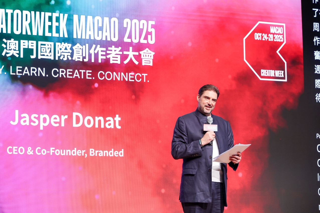 Branded首席执行官兼联合创始人 Jasper Donat在发布会上介绍本次活动策划理念及国际创作者阵容,并有国际及内地的MCN(Multi-Channel Network)多频道联播网负责人分享如何透过“2025澳门国际创作者大会”平台,促进海外创作者了解中国市场,推动双向交流。澳门创作者亦分享本地创作生态,及与国际接轨的经验和愿景 。