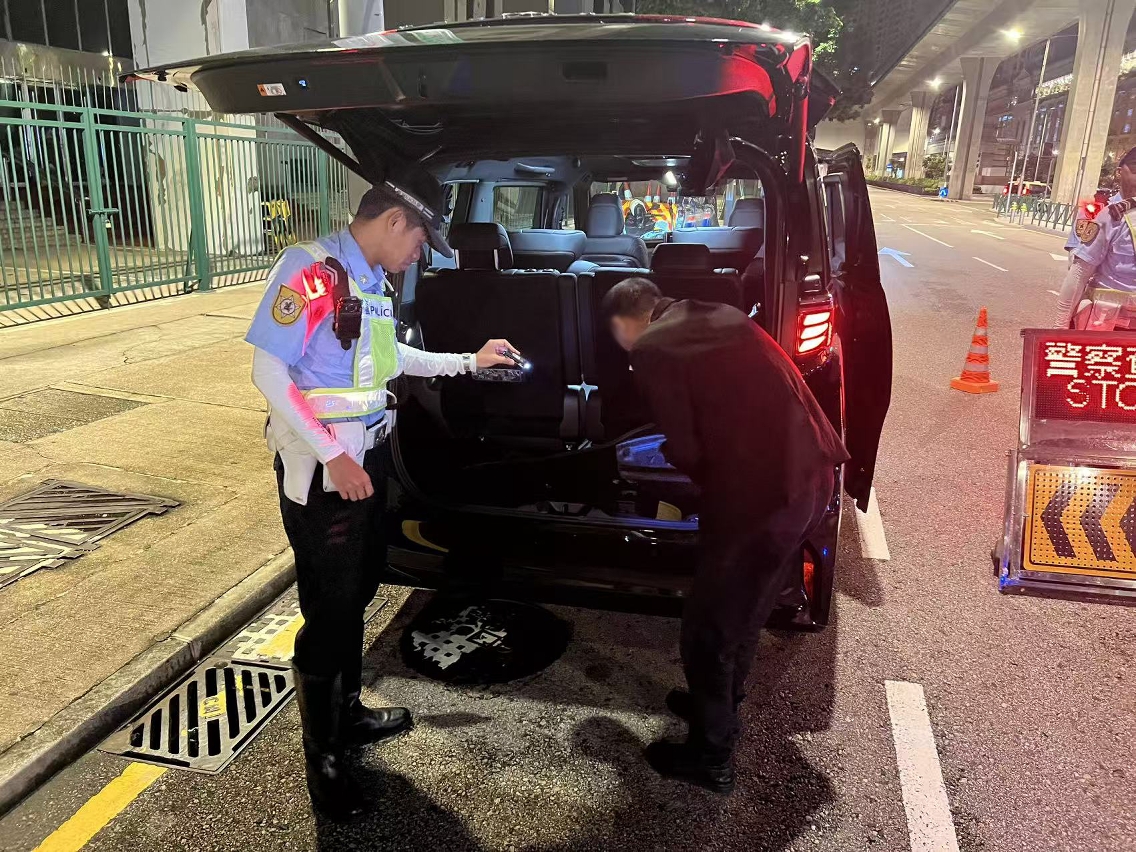 查车行动方面,共截查35辆车辆,合共检控6宗违例(2宗没有使用行车灯、1宗无牌驾驶、1宗没有保险、1宗行驶中使用手提电话及1宗车身颜色不符)。