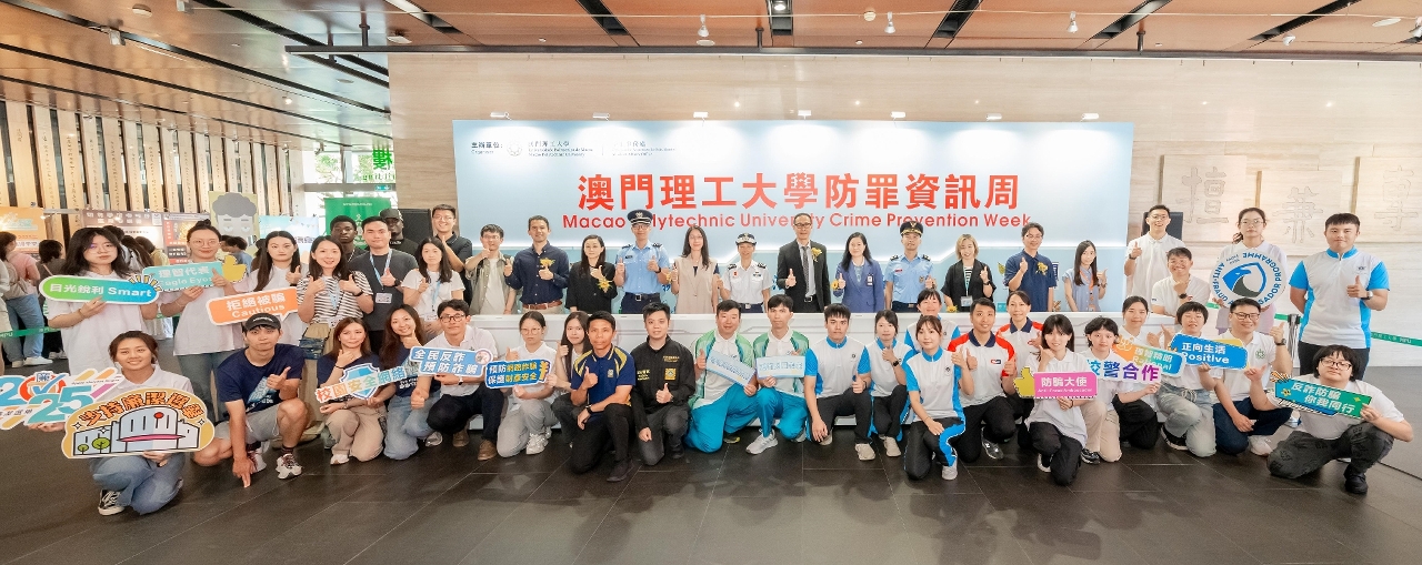 启动仪式由澳门理工大学代副校长吴新凡携同多个澳门特区政府部门及社服机构嘉宾主礼,包括海关知识产权厅厅长李思雅、司法警察局社区警务及公共关系处处长赵朱惠敏、廉政公署宣传教育处处长麦翠仪、消防局教育宣传及公关处代处长黄思添、治安警察局公共关系处副警司李振洪、劳工事务局准照及技术支援处职务主管黄嘉仪、卫生局防控烟酒办公室高级技术员黄蓓蓓、澳门基督教青年会执行干事卓箭球、鲍思高青年服务网络自由TEEN地主任谭迪生、圣公会乐天伦赌博辅导暨健康家庭服务中心活动协调员郑颖娴。启动仪式标志着“2025防罪资讯周”正式开始,设有多个互动主题宣传摊位,包括提防电骗反诈、保管个人财物、防火安全、保护知识产权、无烟限酒、廉洁选举、劳动权益、预防滥药及预防沉迷赌博等,为大学生带来富有教育意义的防罪教育活动,培养大学生知法守法和正向生活。