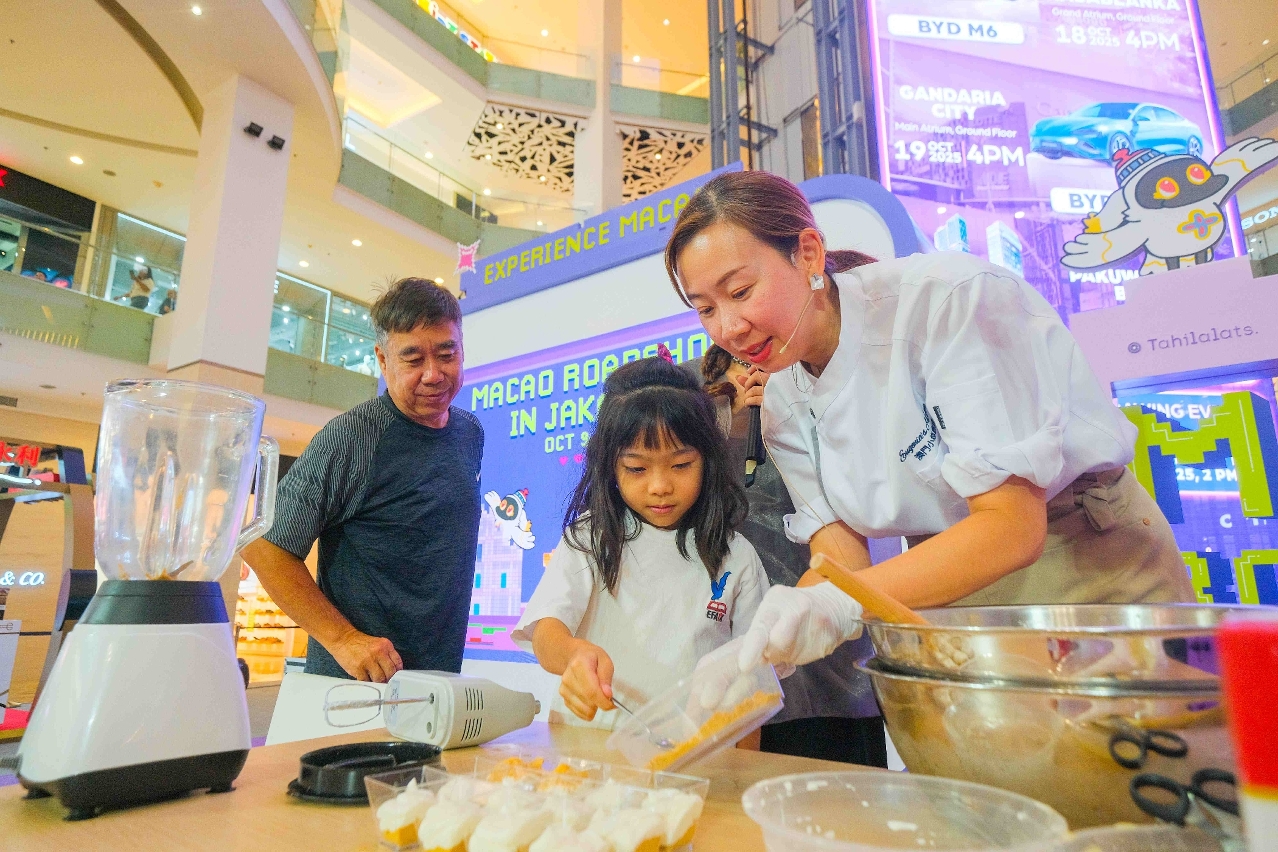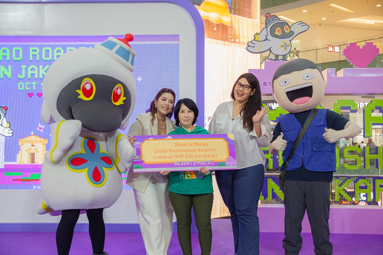 在印度尼西亚的活动上,澳门旅游吉祥物“麦麦”与当地著名潮玩IP “Tahilalats”联乘合作,紧贴当地年轻客群喜好,加强宣传效果。此外,澳门厨师梁咏尧(Eugenia)展示土生葡人美食技艺,通过试食环节派出1,850份食品,带领现场众沉浸式体验最地道的澳门风味。