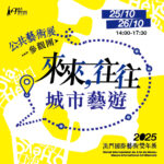 “艺文荟澳:澳门国际艺术双年展2025"两件/组公共艺术作品《借来之手》及《商贾与勇士》近日已分别于岗顶剧院及果栏街19号展出。10月25日及26日将举办延伸活动“来来往往‧城市艺游”,有意参加者可于明日(10月16日)起透过一户通的“活动报名”登记。
