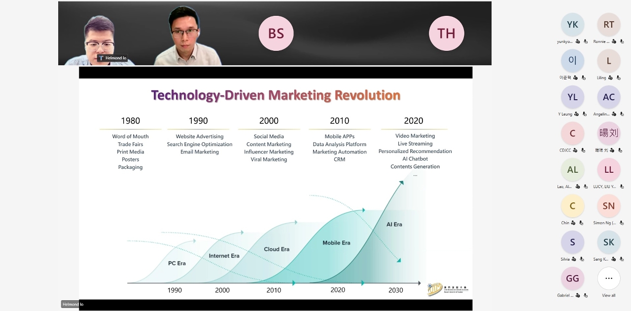 澳门旅游大学于2025年10月15日 成功举办第一场“面向未来系列”线上讲座,主题为《释放AI潜能:革新旅游及服务业营销》。本次活动吸引来自不同国家的学生、学者及业界人士参与,共同探讨人工智能 (AI) 为行业带来的革命性影响。