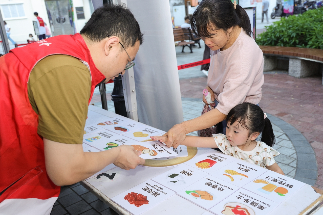 活动以「运动减压、运动营养」为主题,连续两周在全澳各社区展开,现场不仅设置专题摊位游戏,更提供多项趣味运动体验,包括羽毛球、乒乓球、足球、篮球、排球与跳绳等,吸引不同年龄层居民积极参与,场面热闹。