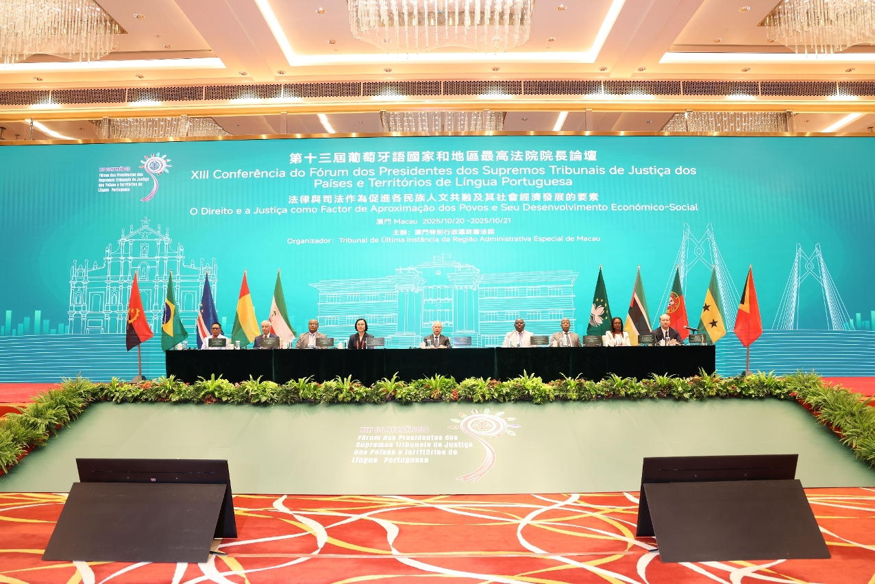 2025年10月20日至21日,由澳门特别行政区终审法院主办的“第十三届葡萄牙语国家和地区最高法院院长论坛”在澳门举行。本次论坛的议题为「法律与司法作为促进各民族人文共融及其社会经济发展的要素」。应澳门终审法院院长宋敏莉的邀请,安哥拉、佛得角、赤道几内亚、莫桑比克、葡萄牙、圣多美和普林西比及东帝汶等七个葡萄牙语国家的最高司法法院院长或代表来澳出席会议,巴西最高法院院长则以录播方式参与。