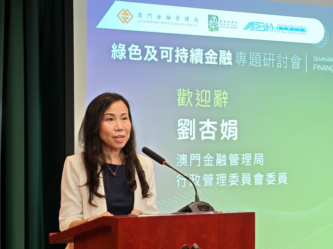 金管局行政管理委员会委员刘杏娟在致辞时表示,自金管局、环保局及银行公会于五年前签署《共同推动澳门绿色金融发展》倡议书以来,澳门绿色金融市场已渐趋多元,绿色债券、蓝色债券、生物多样性及碳中和债券等相继在澳门发行;澳门金融机构亦陆续推出面向本地和区域市场,针对个人、中小企及基建能源等领域的创新金融产品,绿色信贷资产跨境转让业务亦相继落地。金管局正制定气候风险管理指引,并将展开业界咨询,以协助本地银行业应对气候风险。同时,鼓励具资质的金融机构和企业,把握澳门的制度与市场优势,开展多元可持续投融资服务,推动绿色转型项目与境内外资金有效对接。