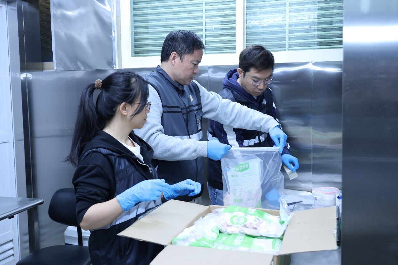 首批供澳门赛区运动员食品,包括冻肉类食品、冷冻包点及调味料,总重共45.3吨,按照严谨的食品安全保障工作方案,已顺利从广州总仓运往澳门。为确保专供澳区食材的安全,货车通关后直接运往检疫地点进行卸货检疫,由市政署人员核对货车封条及总仓提供之货物清单资料,并进行检验检疫,随即进入专仓上锁保存,实现从产地到使用地闭环管理,保障食材安全可靠。