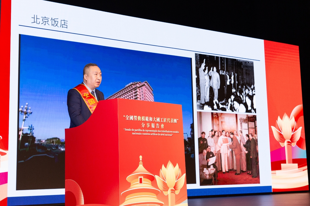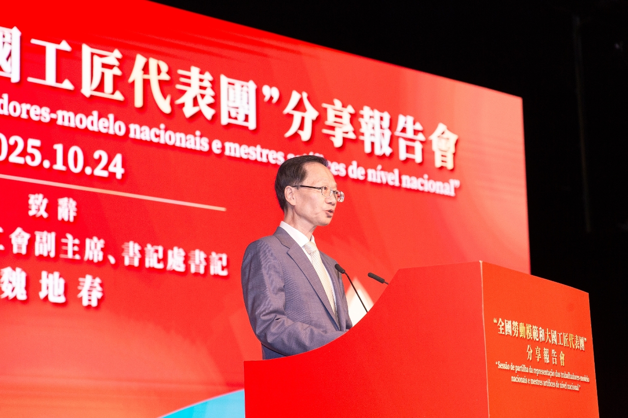 代表团七名劳动模范及大国工匠,包括高凤林、洪家光、段江南、詹春佩、诸懿青、刘忠、杨俊,分别来自高端制造、人工智慧、金融航运、文化艺术、餐饮服务等多个国家战略领域和重点民生行业,他们分享了自身经历,细述在技术攻关、技艺传承和职业发展道路上的奋斗故事,并阐述了对劳动的理解与感悟,让本澳劳动者以此作为榜样,激发其在自身的不同岗位上发光发热,作出更大的贡献。