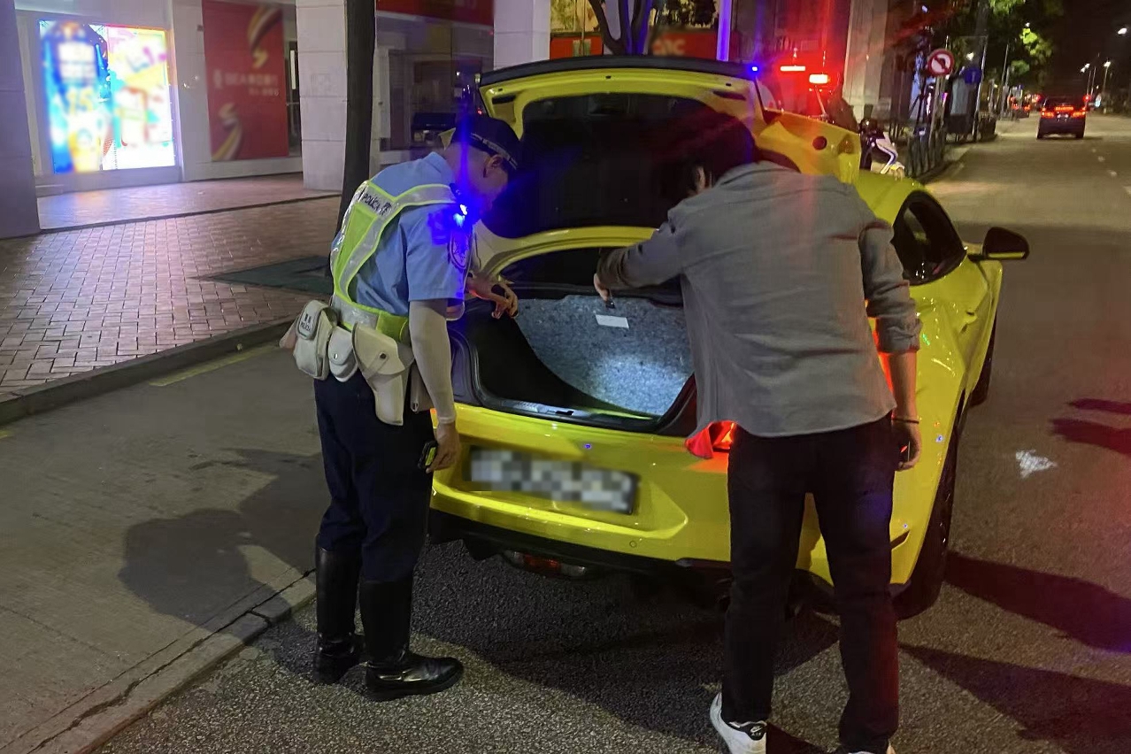 查车行动方面,共截查36辆车辆,合共检控2宗违例(1宗没有保险及1宗电单车驾驶资格未满一年载客)。