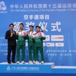 在第十五届全国运动会群众比赛空手道项目的男子团体型赛事今(6)日举行。澳门代表队队员、澳门大学学生郑沘珞与队友凭藉精湛技艺与默契配合,以优异表现摘下空手道男子业余组团体型金牌。这是澳门代表团在今届全运会中获得的首面奖牌。