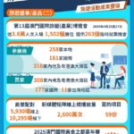 • “旅游+会展”:4月举办“第十三届澳门国际旅游(产业)博览会”, 70个国家及地区参展,设1,502个展位,规模创历届新高。近3.8万人次入场,商务配对逾1.6万场,促成59份签约。