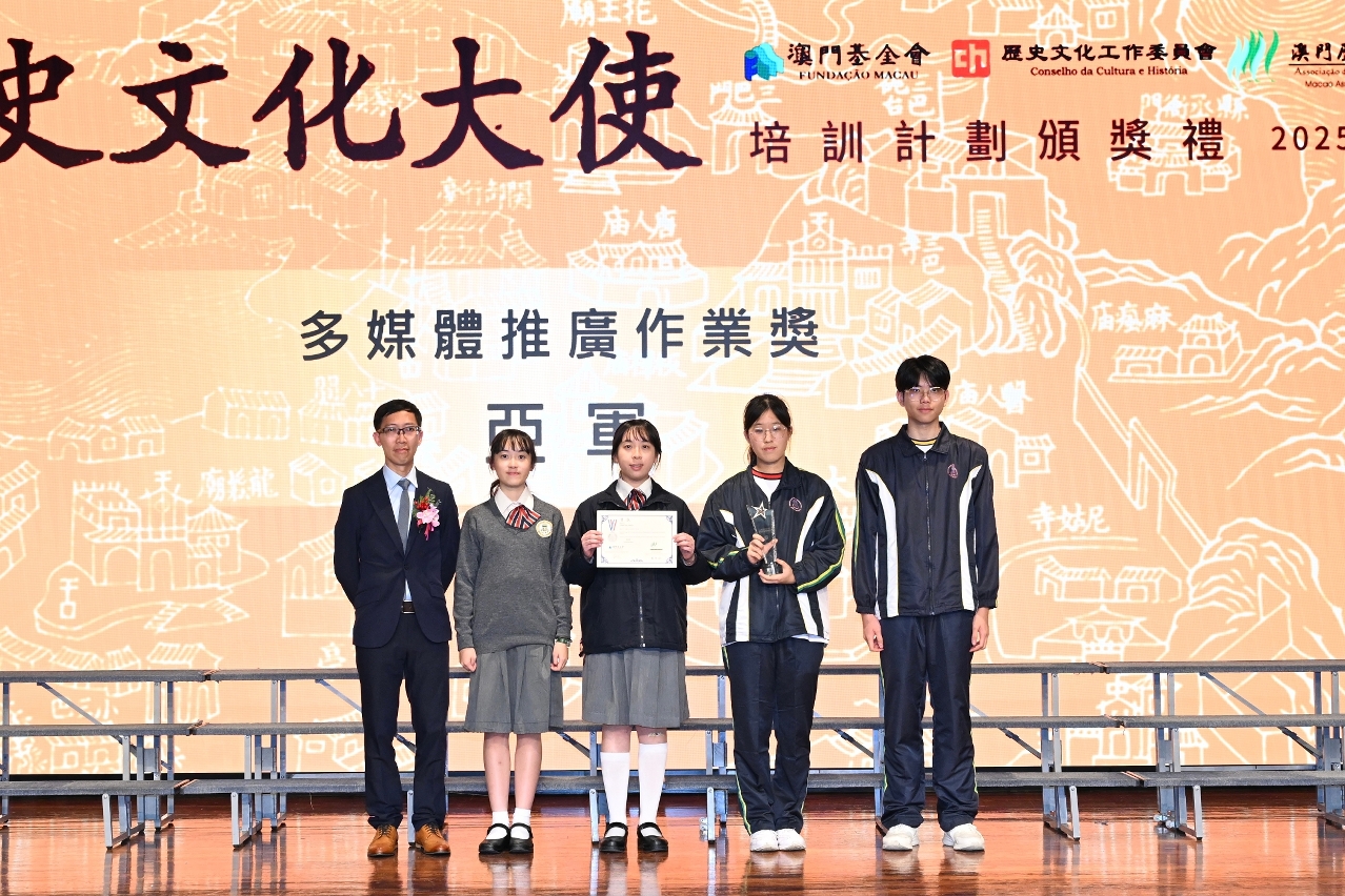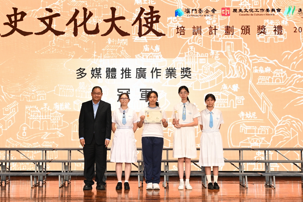 在仪式上,嘉宾分别向5班学员颁授培训计划证书、并颁授优秀报告证书及学生组多媒体推广作业比赛的冠、亚、季军的奖项,其中多媒体推广作业冠军由嘉诺撒圣心英文中学夺得,亚军得主为澳门大学附属应用学校及濠江中学组成的队伍,而季军则由澳门坊众学校及氹仔坊众学校组成的队伍夺得。