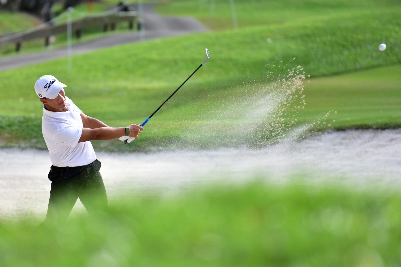 高球李冠宏(LEI KUN WANG)把球从沙池打回果岭