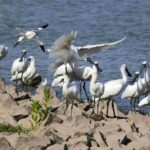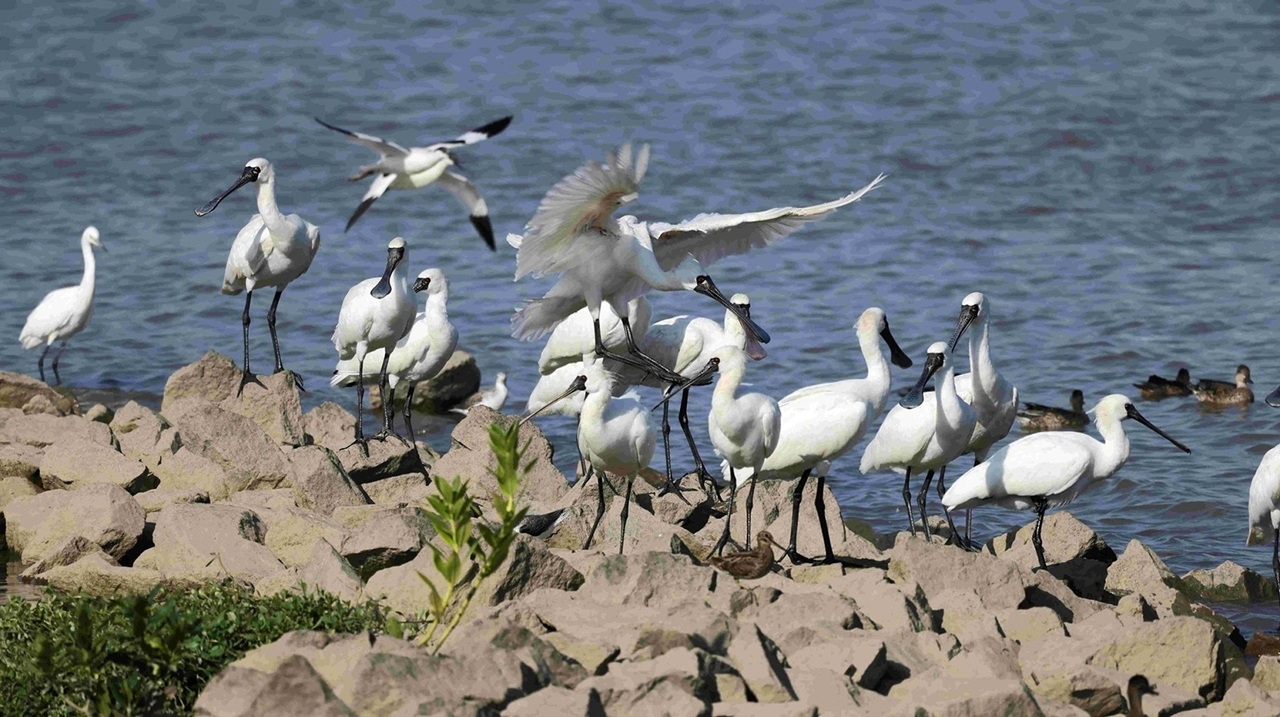 来澳度冬的黑脸琵鹭在生态区内活动